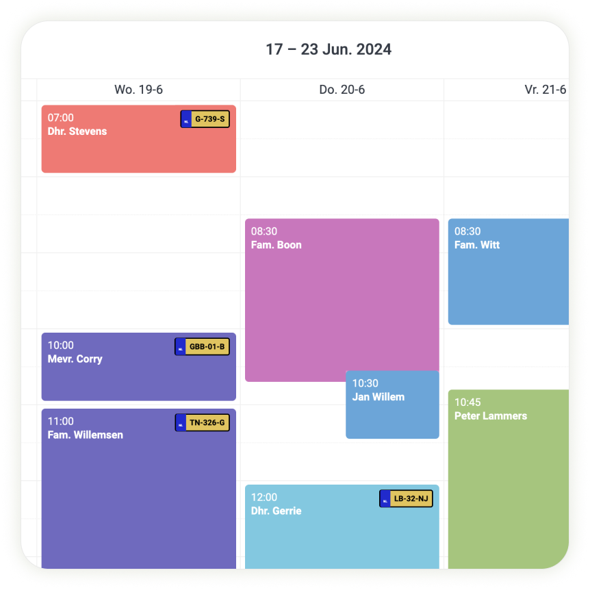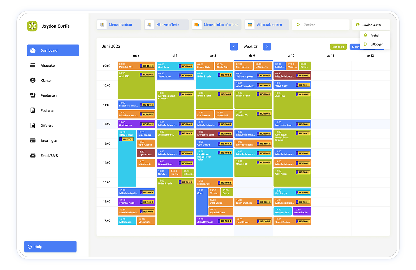 Onze Kivii garagesoftware biedt een kalenderfunctie die een eenvoudig en gedetailleerd overzicht geeft van de